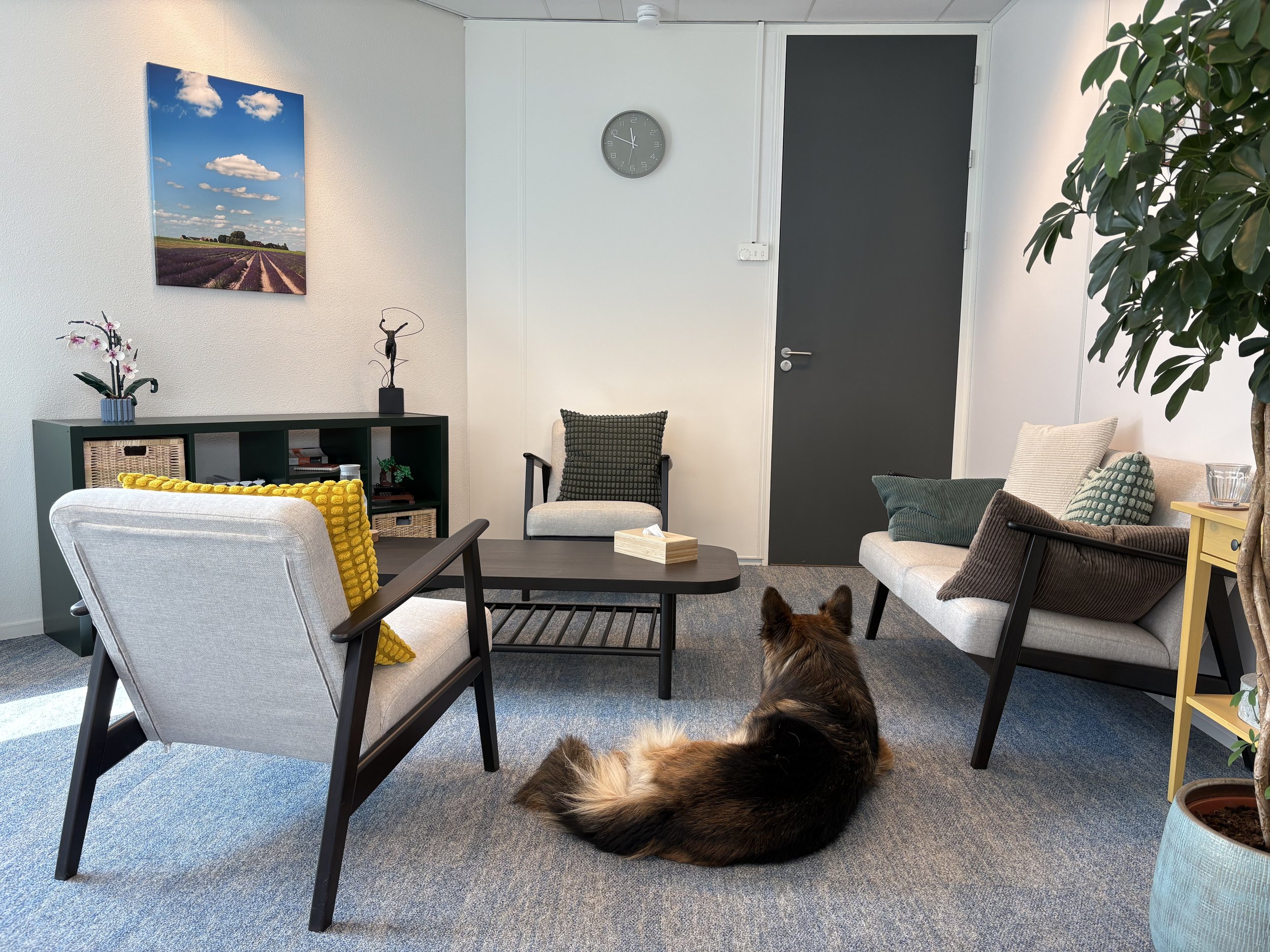 Wat uniek is aan mijn praktijk, is dat mijn hond Louka er is